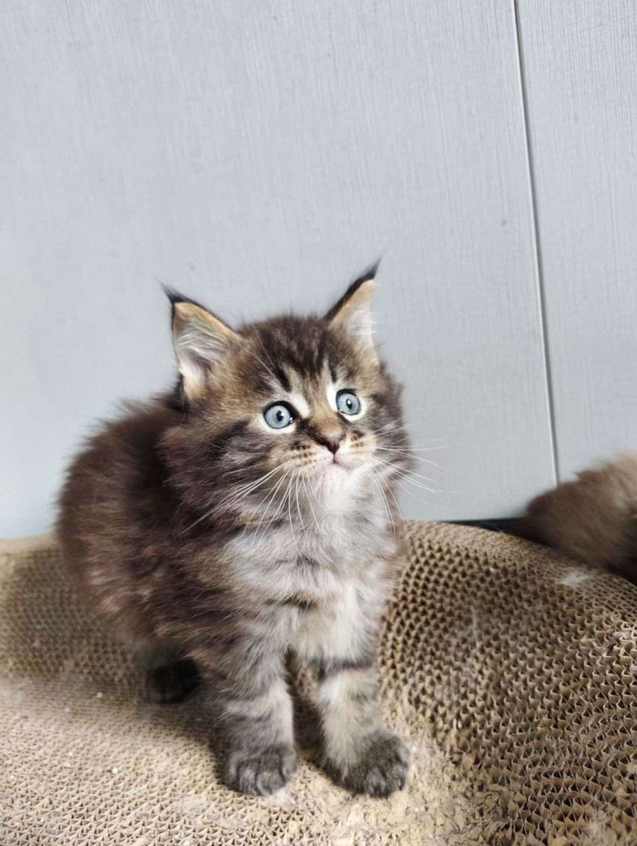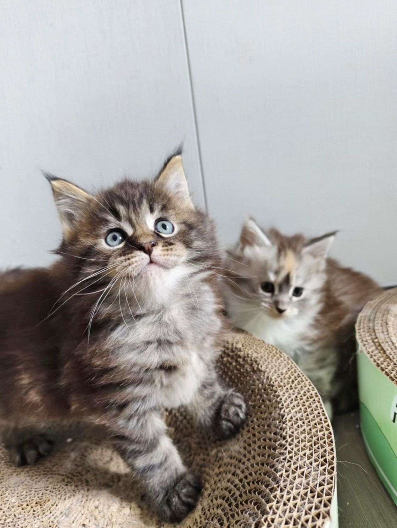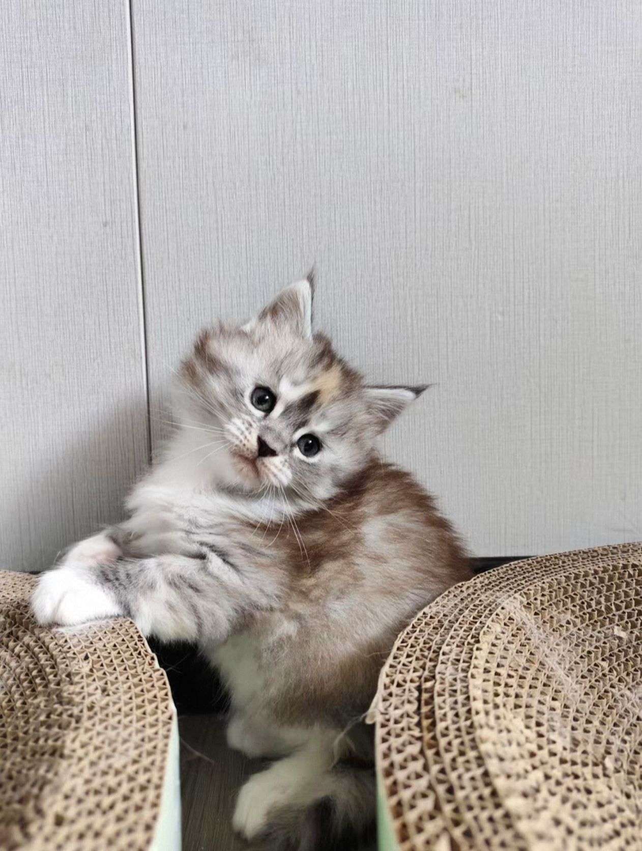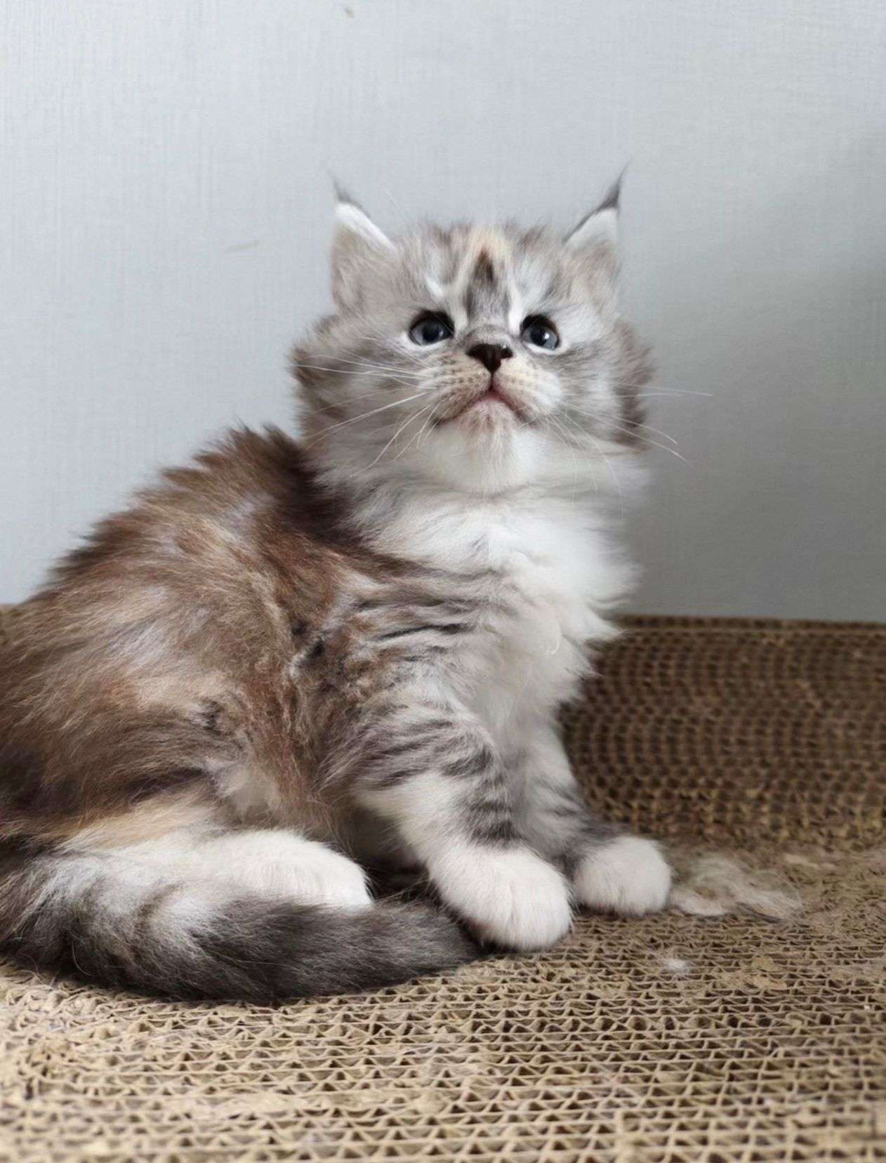 棕虎缅因弟弟,银补丁色妹妹,品相好,毛量好,刷子毛长,有嘴套,长大了非常霸气,有喜欢缅因猫的可以看看,价格也合适,包健康,达州本地可上门看猫,也可以包送到家