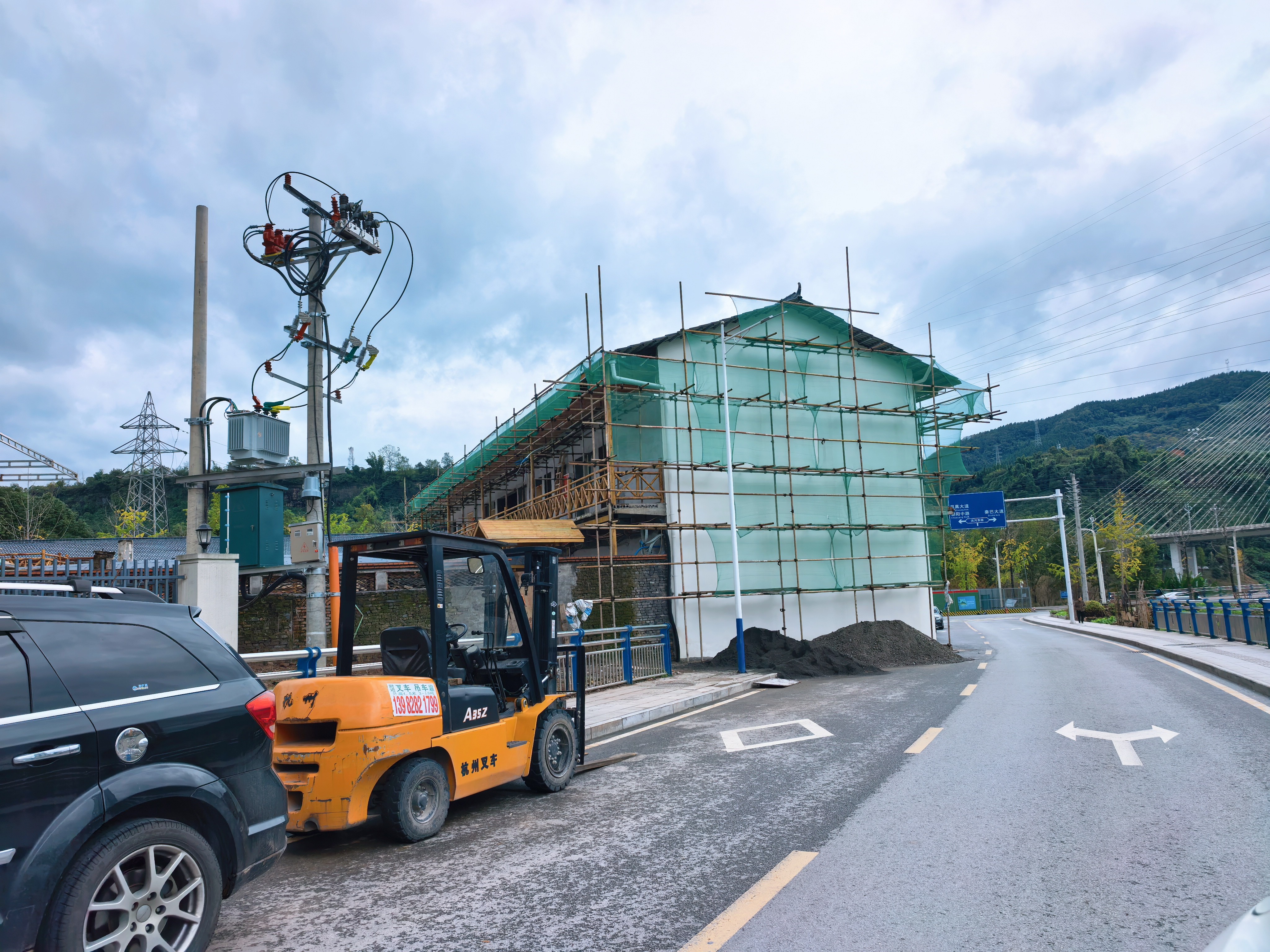 你看,它爬上楼顶了