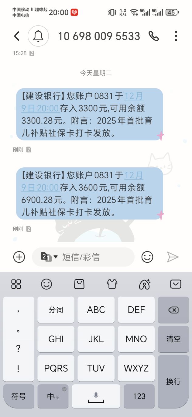 育儿补贴到账了