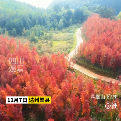 今日立冬,昼夜温差加剧,这种气候为达州渠县的枫叶披上了最浓艳的色彩。