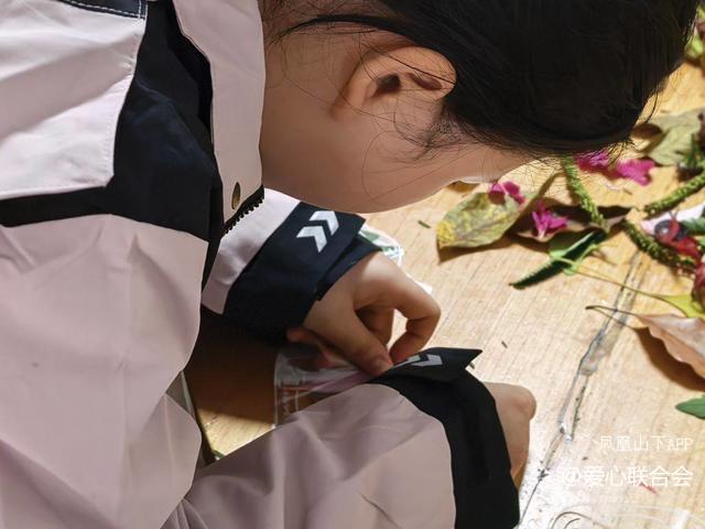 有的孩子将枫叶拼成了蝴蝶的翅膀,有的用银杏叶和小花组合成了美丽的裙摆,还有的发挥想象,创造出了独一无二的抽象图案。志愿者们始终陪伴在侧,与孩子们亲切交流,不时给予鼓励和建议。整个过程温馨而专注,孩子们的脸上洋溢着创造的快乐和满足感。