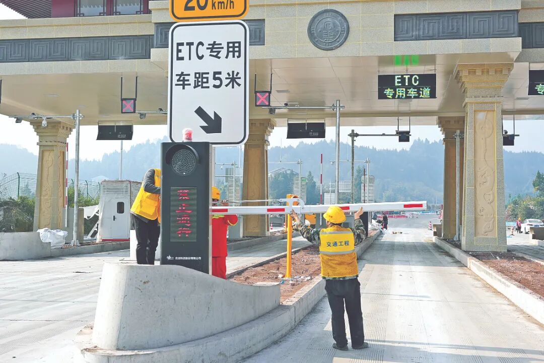 走进渠县服务区,该标段相关负责人指着正加紧进行内装的主体建筑告诉记者:“这儿仅剩下一些收尾工程。”前往渠县收费站,记者又见到工人正忙着安装收费站的道闸栏杆、贴反光标。
