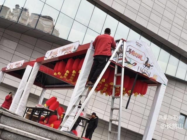 在达州市博物馆门口,4个新春游乐园已基本搭建成型,工作人员正在挂红灯笼,搭建工作台灬