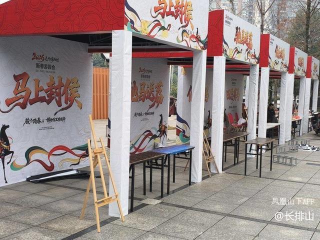 2025年还剩下最后一天了,达州市西外博物馆,西外人民广场喷泉,罗浮广场3号门的工作人员正在挂灯笼树,搭建舞台和马年雕塑像,博物馆门口也在搭台马年新春游乐园封候台,共庆2026年马年的到来。