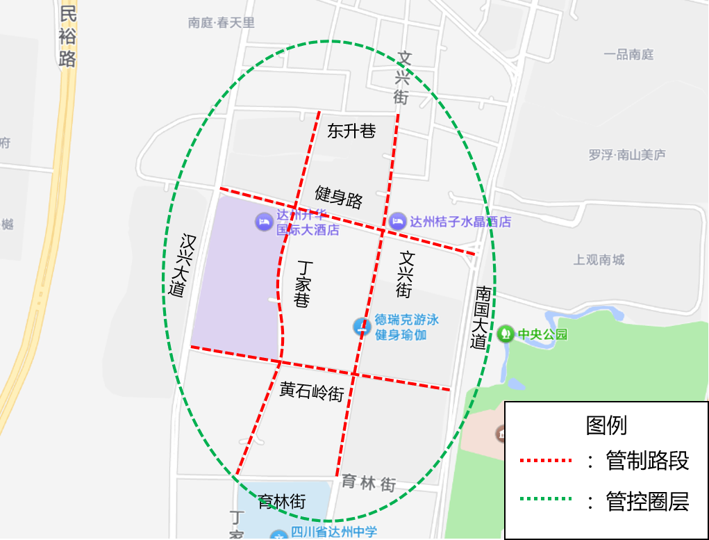 (二)管控区域:达川区天益广场(健身路-文兴街-黄石岭街-汉兴大道二段)区域。