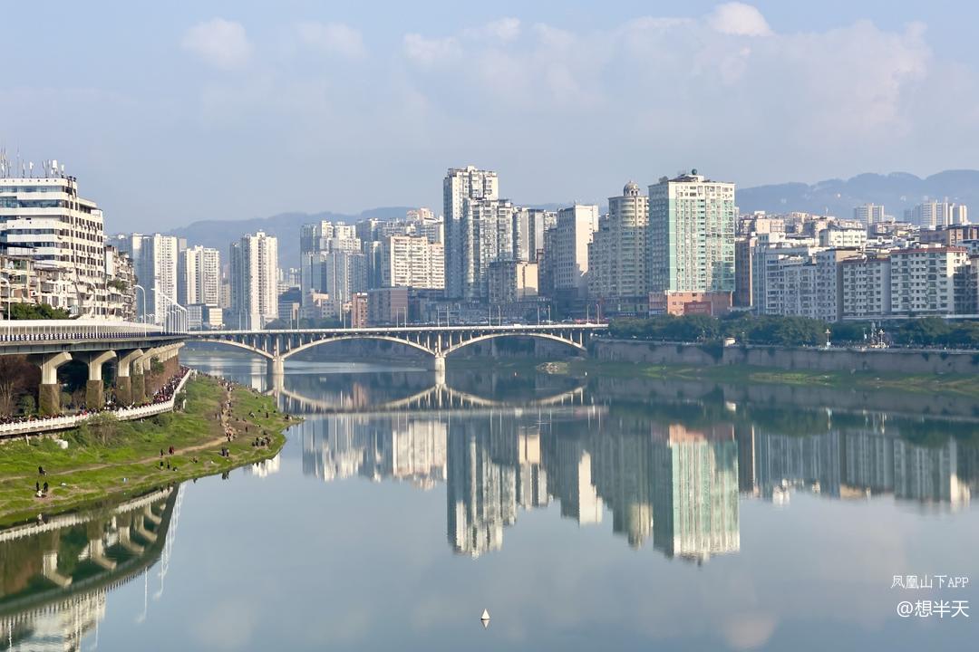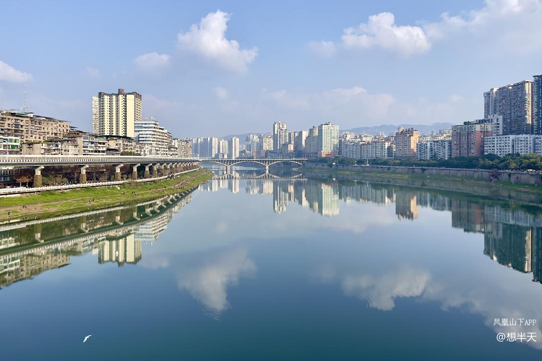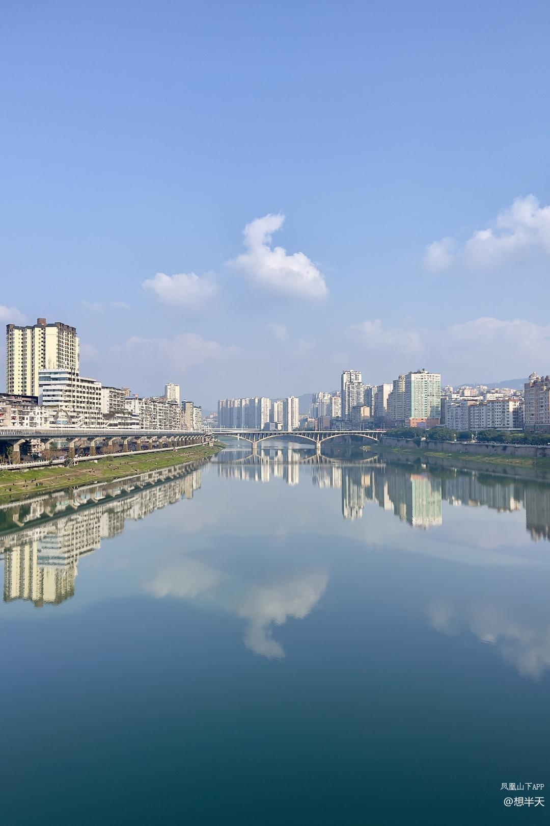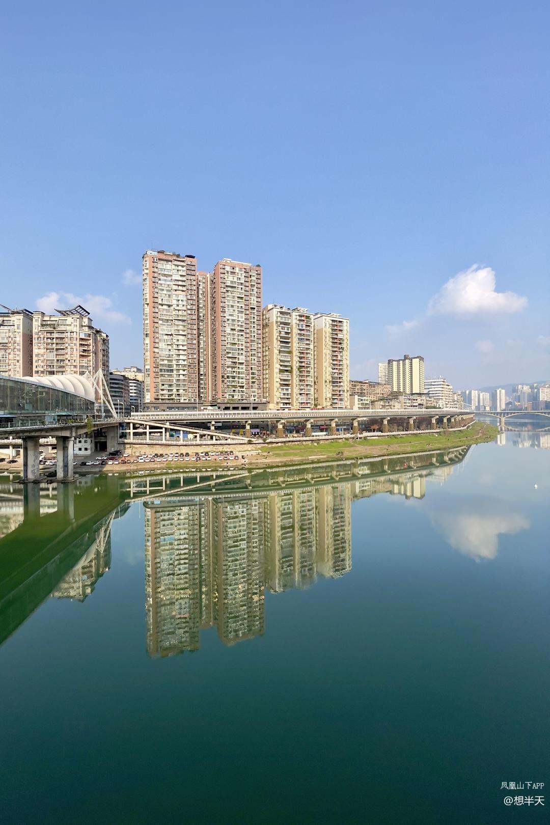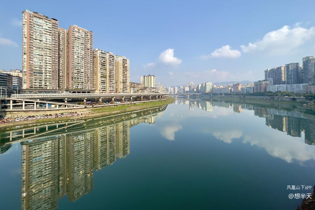 今日小寒,上午奇冷,下午温暖阳光上班,州河两岸的高楼大厦沐浴在阳光下,州河水波不兴,倒影出彩!天空中的白云也下河沐浴了!