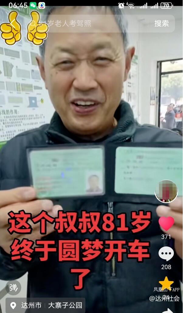 达州81岁老人一次性通过驾考拿C2驾照!曾开“老头乐”,想自驾游皖滇黔