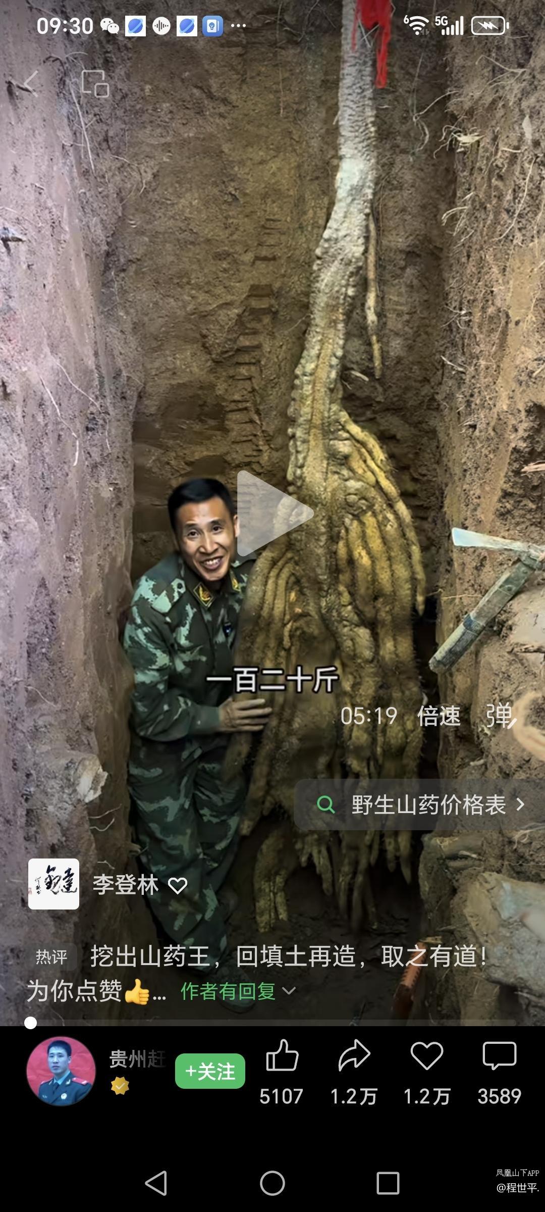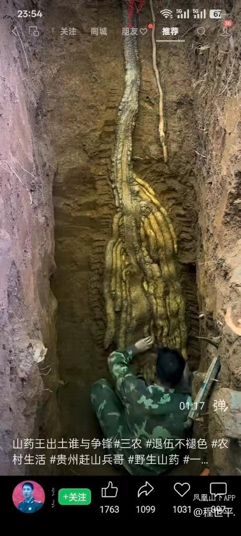 贵州六盘水市的採药人,在大山中挖了四米多深,才把120多斤的大山药挖出来。