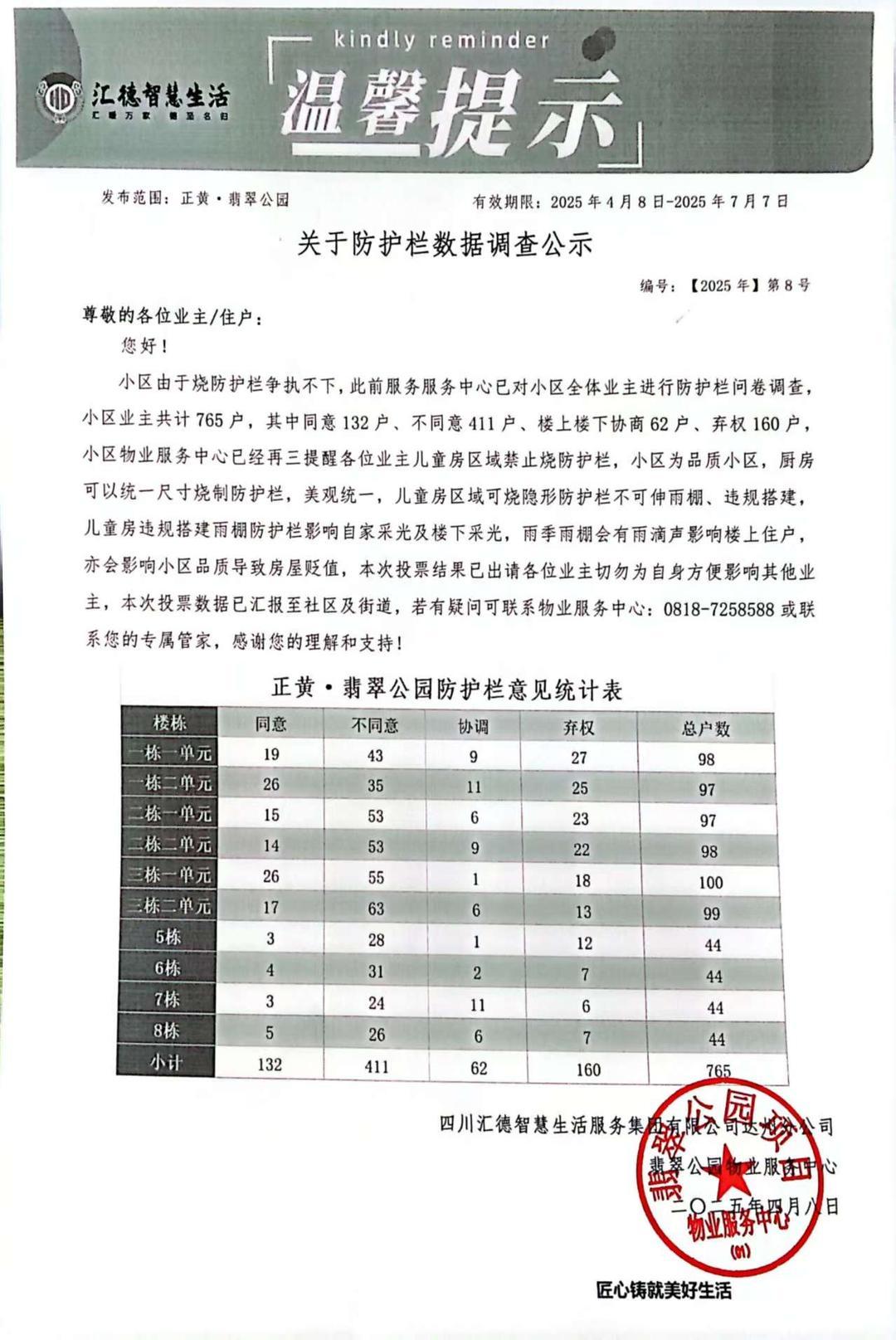 我是达州市通川区正黄翡翠公园小区的业主。本小区前期经过合法合规的业主共同投票,已明确约定 “不允许超范围烧制、安装防护栏” 。然而,我的邻居(3栋1单元403室)在未获得物业批准、也完全未征询我作为直接受害方意见的情况下,公然违反规约,私自安装了一个超大面积的凸出式防护栏。