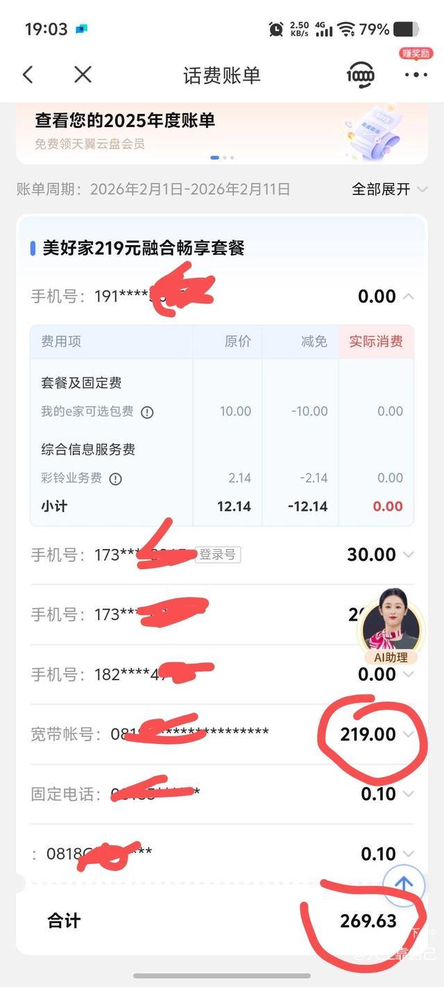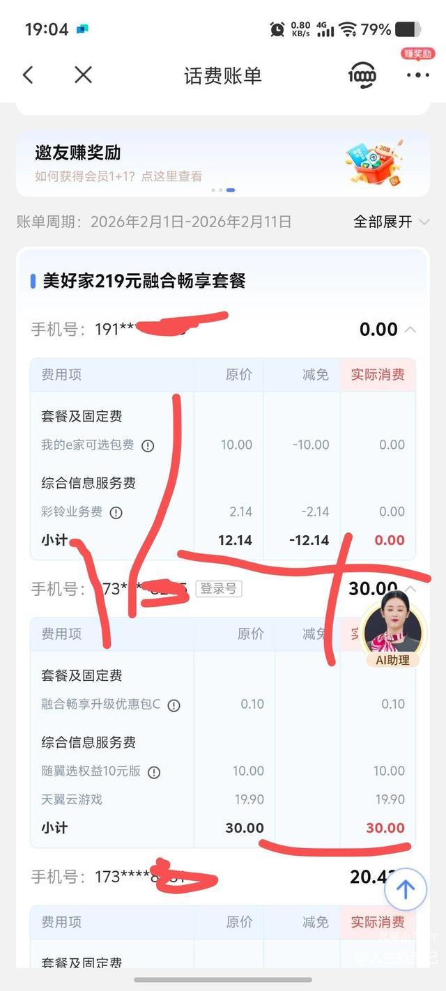 以下是心想查看一下手机掌上营业厅帐单才发现电信公司随意给客户添加额度以外约业务(需另加钱)