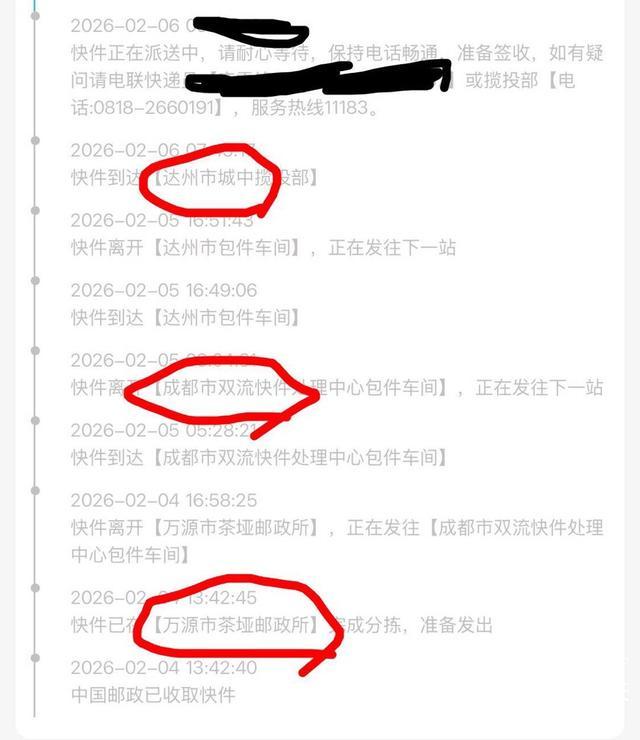 一个从万源发达州的快递,从地域上看,最多半天时间。但实际上这个快递,从万源下来经过达州,该下不下,还得花两天时间去成都兜一圈儿,看了成都的热闹才重新回到达州来。我想说的是这是邮政快递运行规划落后还是邮政火车运力用不完?达州隔三差五都在报道,南外西外北外都有计划建设物流中心,有的物流中心都建设了好多年了,邮政快递显然没有把达州的物流中心看得上嘛!