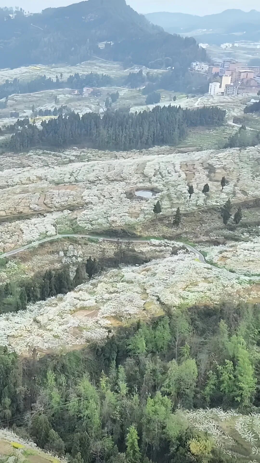 🌸亮点:五千余亩李花迎春绽放,如雪似雾的花海铺满山野。站在高处远眺,仿佛整座山峦都被轻柔的云絮包裹,朦胧而梦幻。