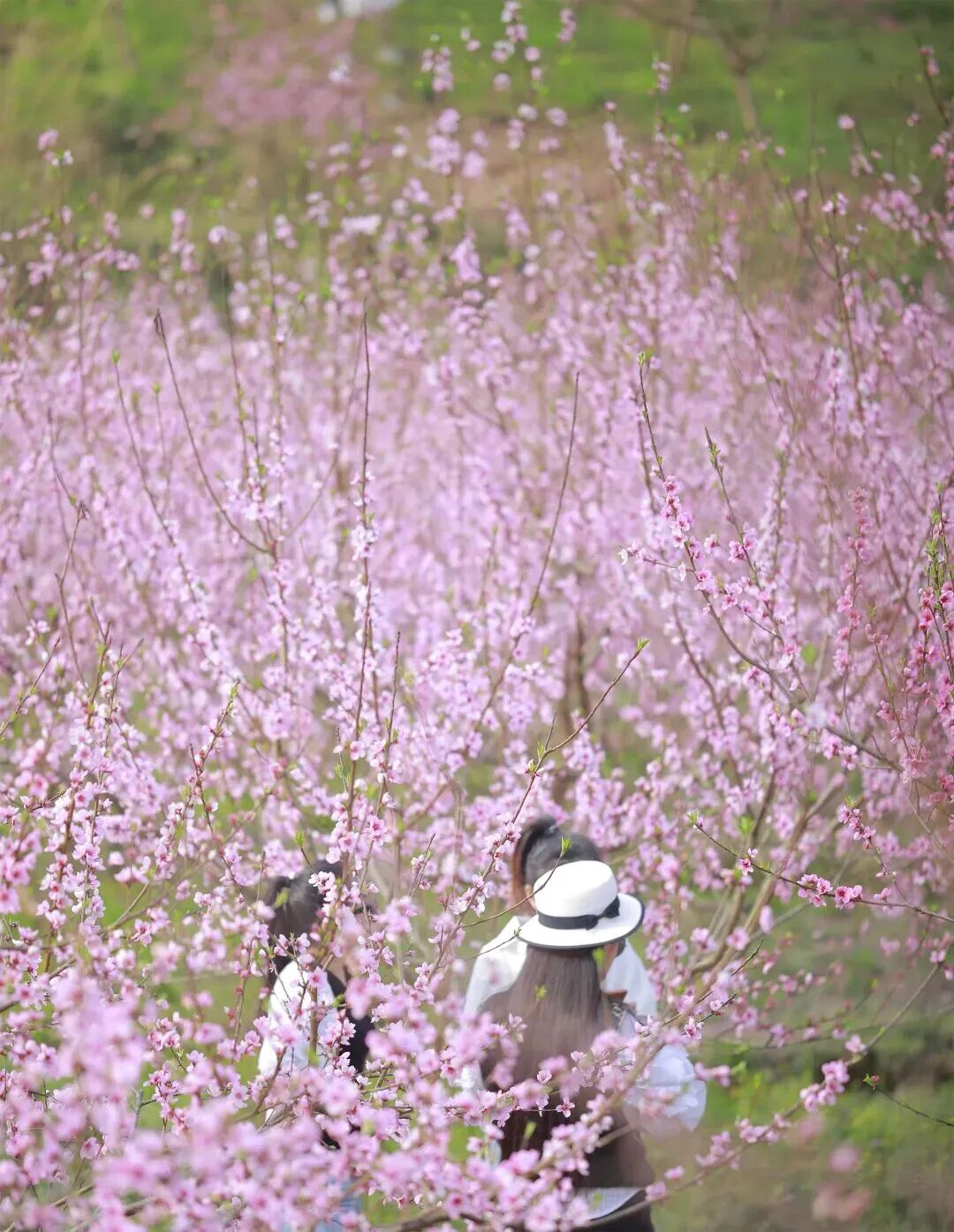 🌸亮点:三百余亩桃花灿烂盛放,风吹桃林,花瓣争相飘落,仿若下了一场人间花雨。
