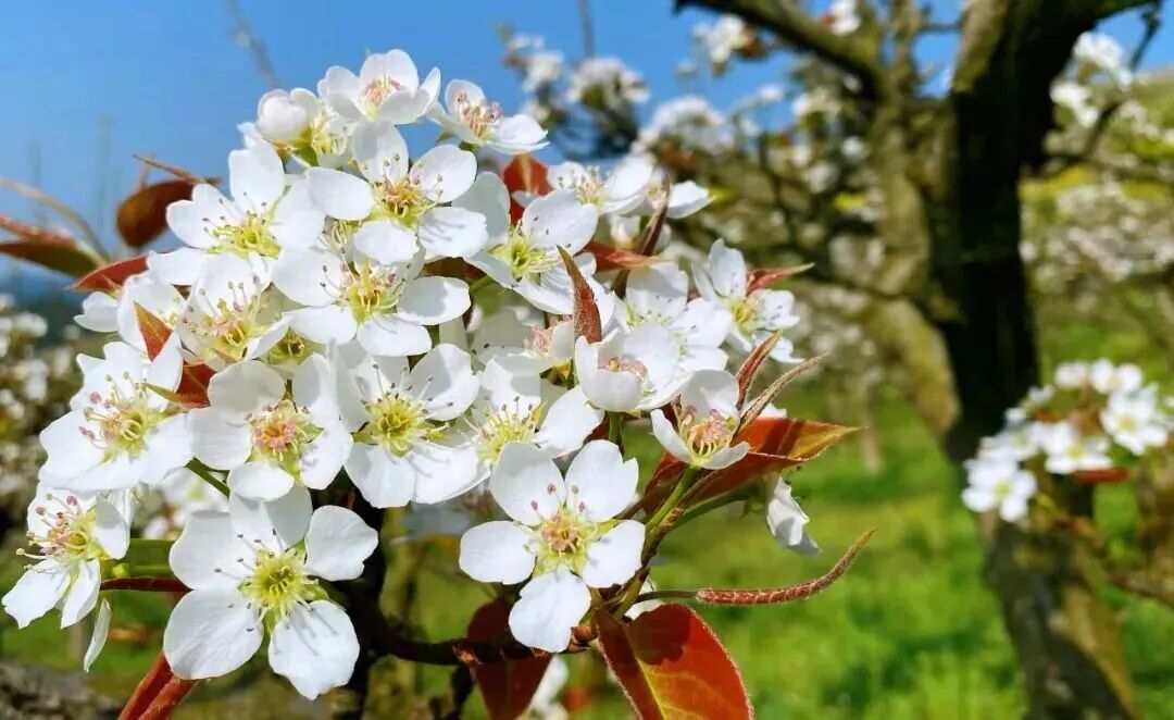 🌸亮点:老树新花,几百颗百年古梨树在此竞相绽放,诉说着时光的故事。