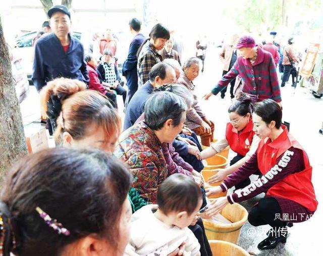 70多岁王登树副会长与胡海军主任、李海英副主任组成泡脚小组,为老人泡脚时体贴如微。从笼脚盆套子,到放志愿者捐的藏方泡脚药、倒水、试水温到搓脚,每个动作如同儿女对父母那份孝敬,温低及时加热水,温高及时加冷水,并温馨告诉每位老人,有高血压的,静脉曲张的不宜高温泡脚。一个90多岁的老人边泡脚边说:我还是第一次这样泡脚,你们学优秀传统文化的志愿者,真如活雷锋,热心服务还不收一分钱。