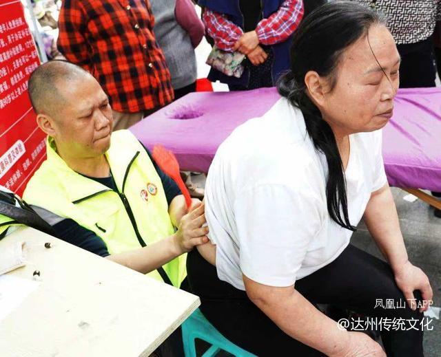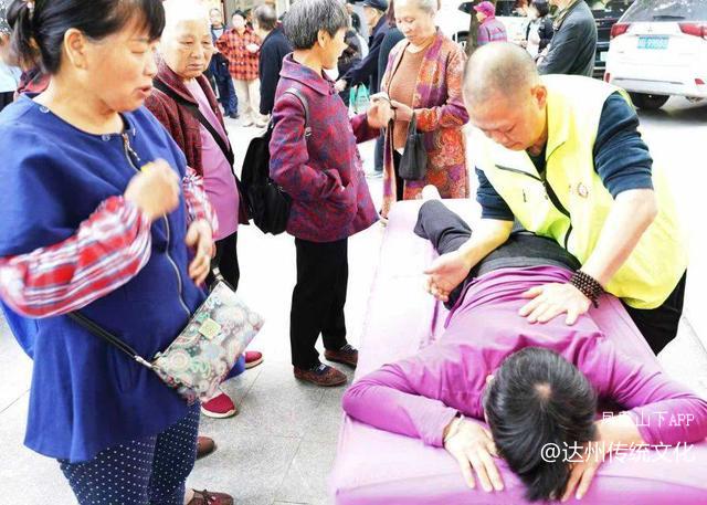 康复理疗组的徐志望夫妇都是志愿者,其按摩技术熟练精准,不少腰腿疼痛多年,活动不便的老人,经他们调理后病情立即减轻,甚至不痛了。瞿代辉医生,擅长按摩头、胫、肩、腰痛等症。还教会不少人从手背中指与无名指间向手腕方向轻推,推到推不动处按压2分钟,同时扭转腰部,经常这样做对减轻腰痛有效果。邓才琼老师为许多老人按摩调理同时并为他们讲解意念、手势配合治病的简单原理,许多老人试验效果也不错。志愿者邓玲现场捐了生姜膏2盒、暖宝宝4袋分发给需要的老人。王中诠、张家秀配合做好按摩排号、维护秩序、贴膏药等。