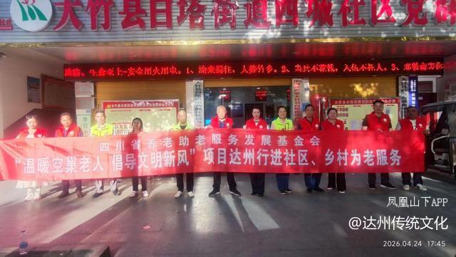 4月23日至24日,近千名老人共同见证由四川省养老助老服务发展基金会主办,达州市传统文化促进会承办、大竹县大众社会工作服务中心执行的养老助老基金会“温暖空巢老人 倡导文明新风”项目达州行进社区、乡村为老服务首场活动,在大竹县西城社区启动。启动仪式上,达州市传统文化促进会秘书长王中诠致词:尊老、敬老、爱老、助老是中华民族的传统美德,关爱老年人就是守护我们共同的未来。省养老助老基金会发起的项目,搭建公益助老的平台,达州市传统文化促进会、大竹县大众社会工作服务中心充分发挥社会组织作用,切实为老年朋友办实事、解难题,逐步聚焦老年群体的生活照料、健康关爱、精神慰藉等实际需求,让他们安享幸福晚年。
